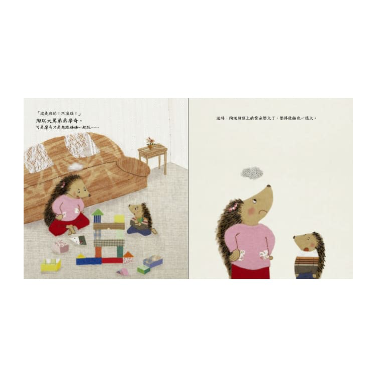 ★運用動物擬人化的圖像,以及雲朵的變化,讓故事更有趣味,增加孩子的語言學習力。