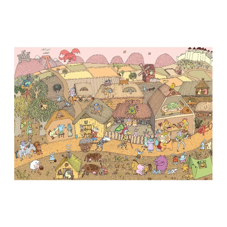 你可以信手翻閱,每一頁都是奇幻小鎮的某個場景,場景中無數的鎮民,都在忙著自己的事,你可以說說看,他們分別在做什麼呢?每翻一頁,場景都換到不同地點,這時鎮民們又做了什麼不一樣的事呢?