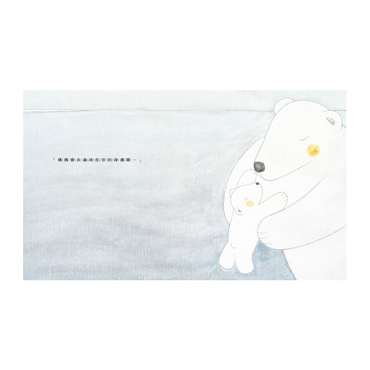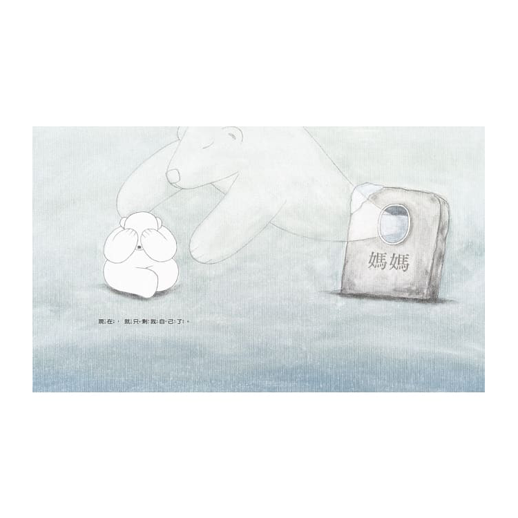 這本書的文字中,可以感受到小北極熊對媽媽離開的埋怨,除了要學著堅強照料起自己,還有對媽媽深深的思念。不過圖片中,可以看到用淡淡線條勾勒出的北極熊媽媽,靈魂一直在小北極熊的身邊,不斷守護著他,為他擋下許多危險。其實小北極熊沒有自己想像的那麼孤單,媽媽離開後,仍然以另一種看不見的方式,延續了她的愛,陪伴著孩子繼續長大。