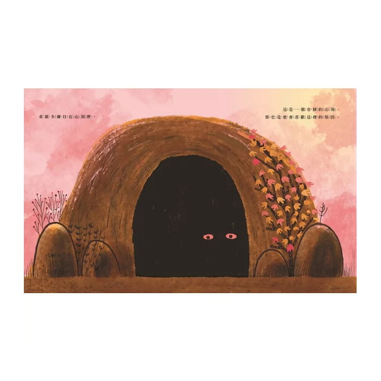 是熊嗎?還是巨獸?說不定洞穴裡的眼睛也可能是插畫家的眼睛?