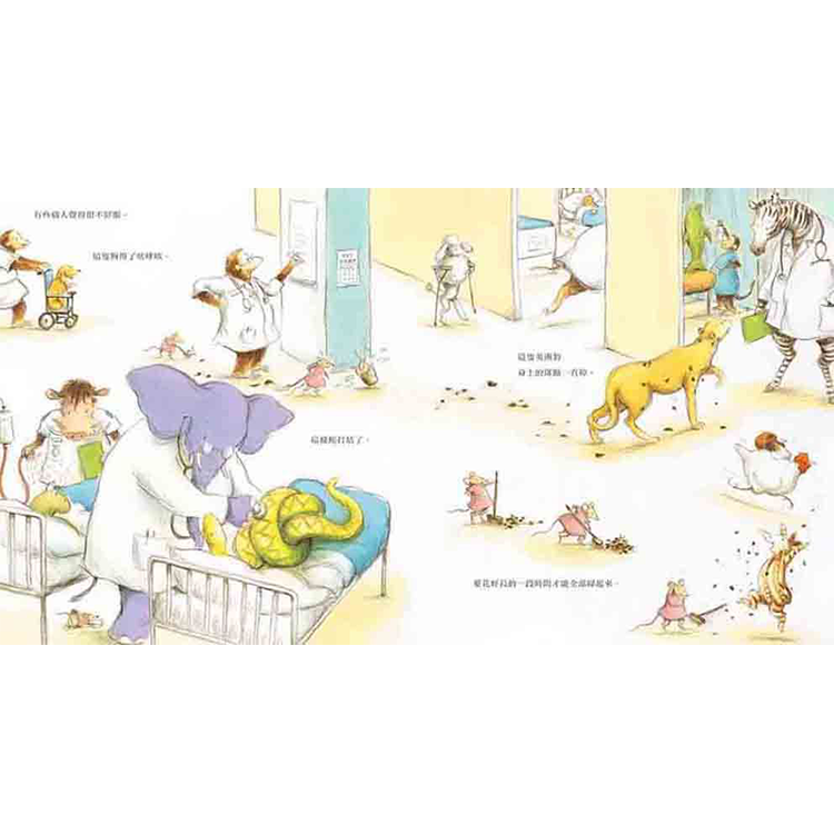 對動物醫生來說,今天將會是忙碌的一天。小小泰倫斯醫生也打包好他的急救箱要去醫院囉。哎呀!一條蛇打結了,一隻豹掉了好多斑點,一隻狗吞下了一個鬧鐘……別急別慌,有泰倫斯醫生當嚮導,每個病人都可以在醫院調整到最佳狀態!