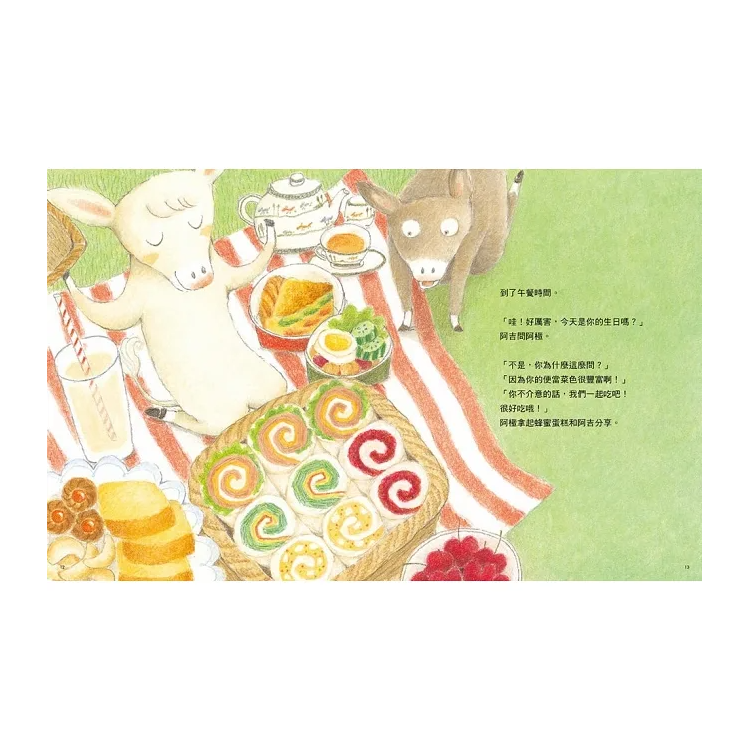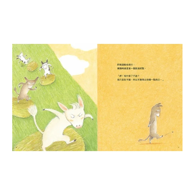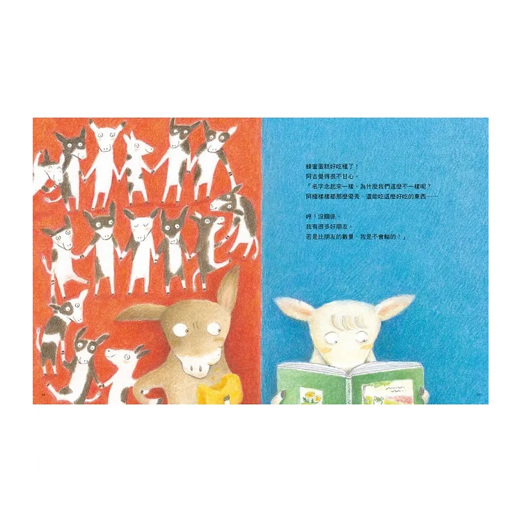 這讓阿吉感到羨慕不已,千方百計想要找出自己的贏面,但是他發現,自己的牛鈴聲音沒有阿極的好聽、洗奶瓶也沒有阿極洗得那麼乾淨,甚至連中午的便當菜色也不像阿極那麼豐富……