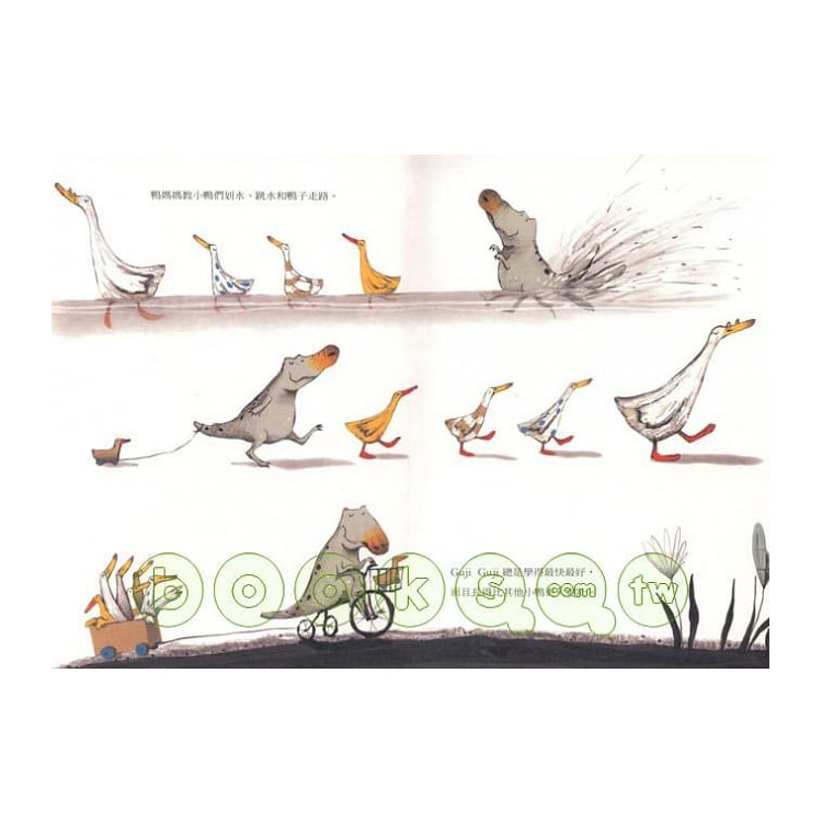 曾獲瑞典Peter Pan Prize小飛俠圖畫書獎的陳致元,他的經典作品《Guji-Guji》,授權16國、改編成兒童劇,這次,以鱷魚鴨Guji Guji為主角,布局完整的鴨子湖成員陣容,加入了鴨爸爸以及許多鴨子湖朋友等角色;繪畫技法也有別以往,以童趣繽紛多彩的風格,賦予故事一股活潑歡樂的嶄新風貌。